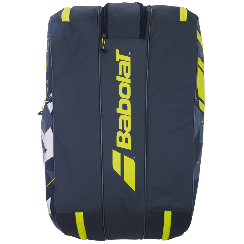 Túi tennis Babolat RH12 PURE là một mẫu tiêu chuẩn nhờ thiết kế táo bạo và nhiều tính năng nâng cấp. Chúng tôi đã phát triển phiên bản RH12 PURE AERO mới công thái học hơn và bền bỉ hơn. Được chia thành ba ngăn, RH12 là mẫu túi có dung tích lớn nhất trong dòng PURE AERO. Ngăn chính có thể chứa tối đa 6 cây vợt, cùng toàn bộ vật dụng bạn cần để tỏa sáng trên sân. Hai ngăn còn lại (chứa lần lượt 2 và 4 cây vợt) đều có lớp cách nhiệt, giúp bảo vệ dây vợt khỏi sự thay đổi nhiệt độ đột ngột.
